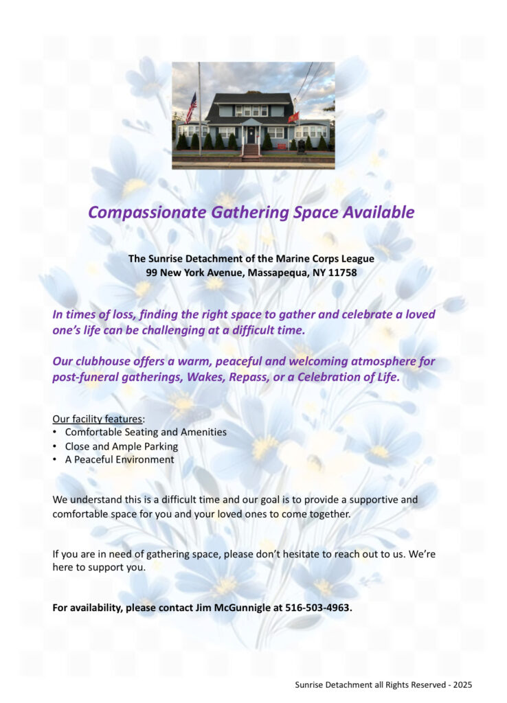 * FOR HALL RENTAL INFO, CONTACT JIM at 516-503-4963 *